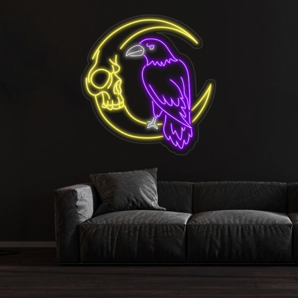 Custom Raven And Moon Skull Neon Sign, Raven Led Sign, Raven Neon Light, Bird Led Light, Animal Wall Art Light, Gift for Bird Lover