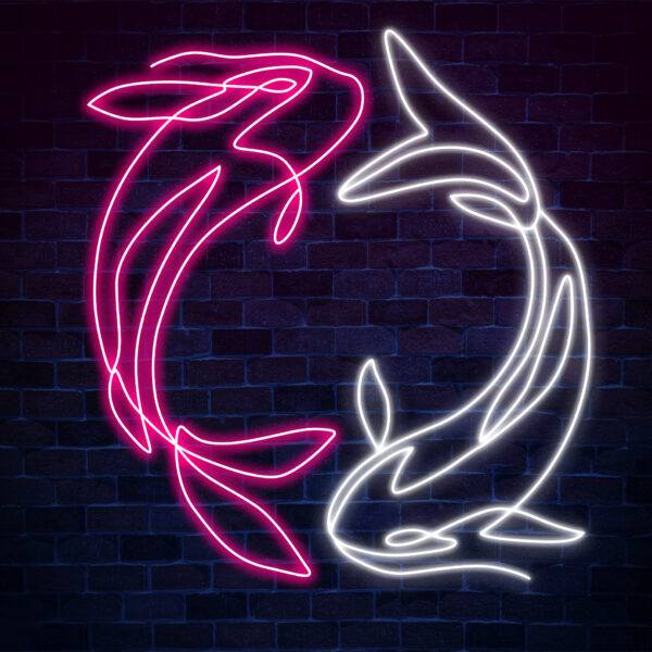 Custom Koi Fish Neon Sign – Yin Yang-Inspired Pink and White LED Wall Art for Home, Office, or Café Decor – Unique Zen Neon Light Gift