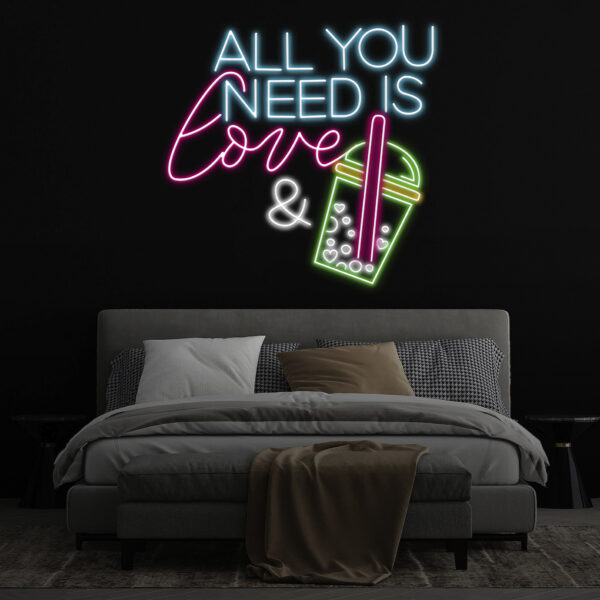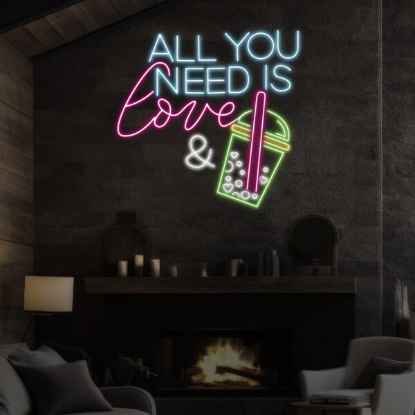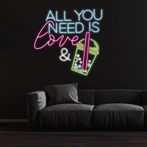 All You Need Is Love & Bubble Tea Neon Sign, Custom Boba Tea Milk Tea, LED Neon Light Drinks Coffee Bar Shop Home Wall Decor, Business Sign