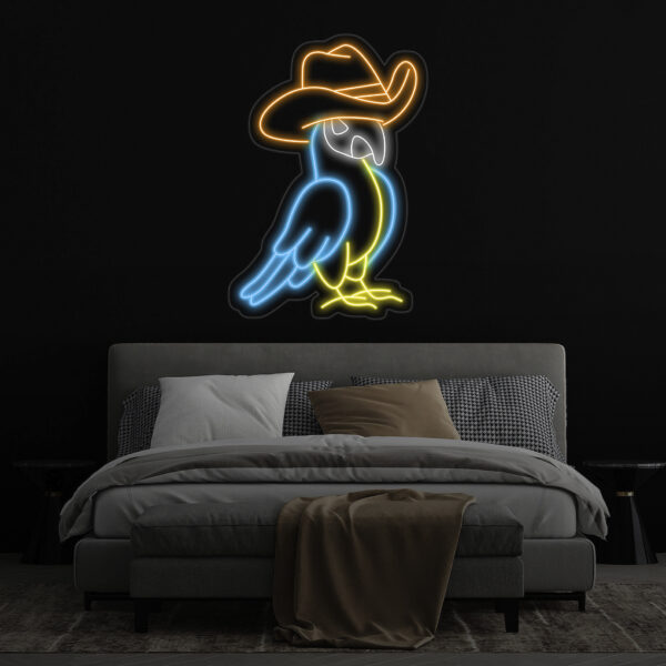Cowboy Parrot Neon Light, Parrot Cowboy Led Light, Parrot Cowboy Hat Led Sign, Cowboy Parrot Bird Neon Sign, Western Room Wall Art Decor