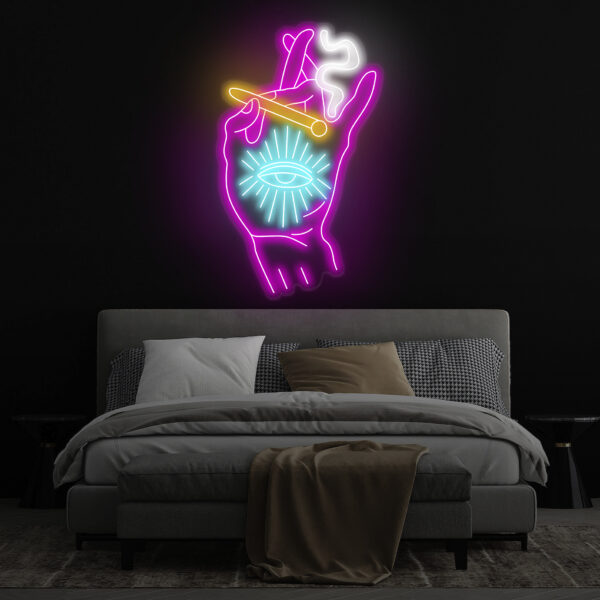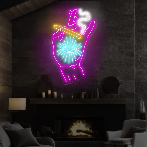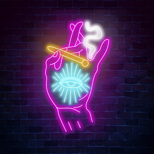 Custom Neon Sign Tripping Smoking Hand Led Light Trippy Art Stoner Wall Decor Art For Home Smoking Hand With Eye Neon Sign