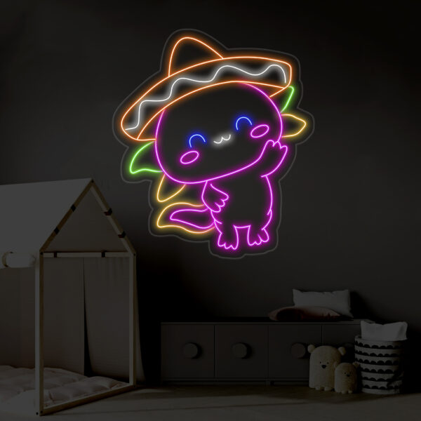 Cute Mexican Sombrero Axolotl Manana Neon Sign, Sombrero LED Sign, Axolotl Manana Neon Light, LED Light, Restaurant Room Wall Decor