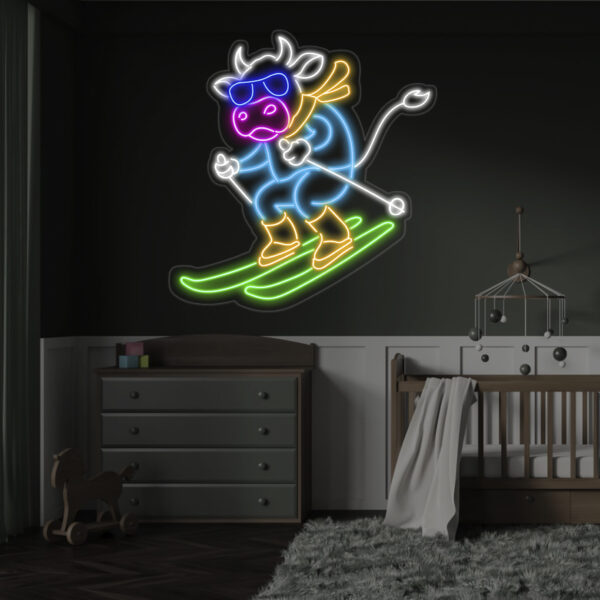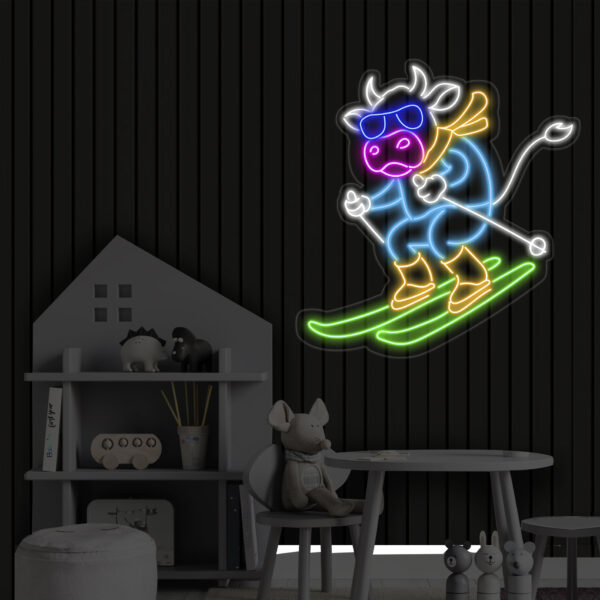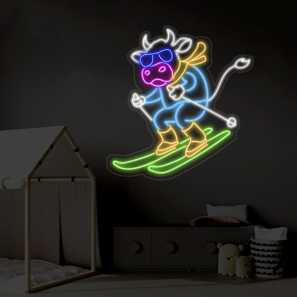 Dairy Cow Skiing Neon Sign, Cow Led Sign, Cow Skiing Sport Neon Light, Cow Led Light, Animal Farm House Wall Art, Animal Home Wall Decor