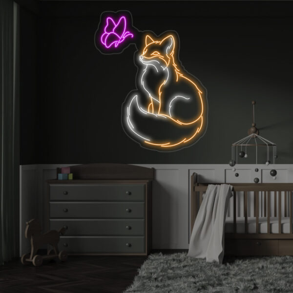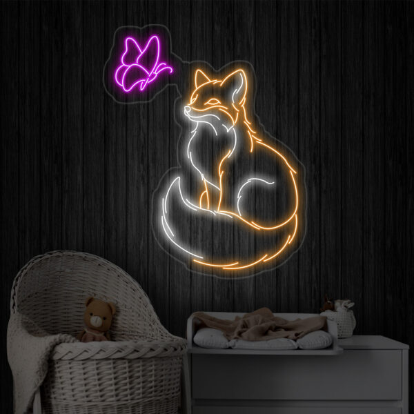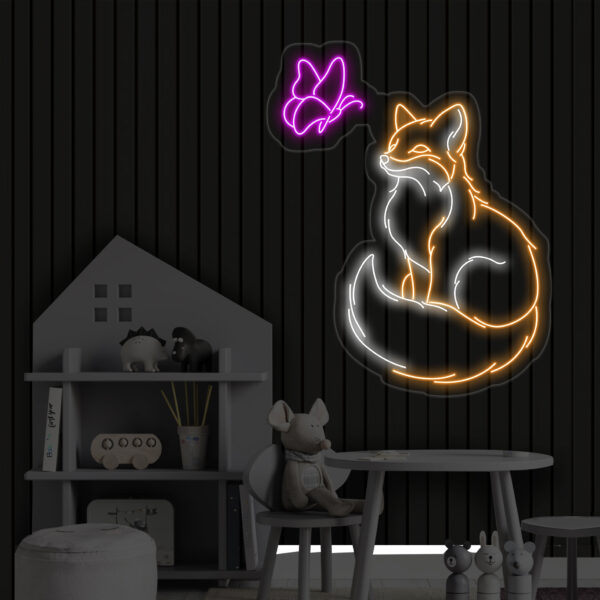 Fox And Butterfly Neon Sign, Fox Led Sign, Fox Light Sign, Animal Neon Sign, Animal Led Light, Neon Light Sign For Wall, Neon Sign Bedroom