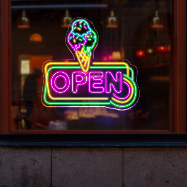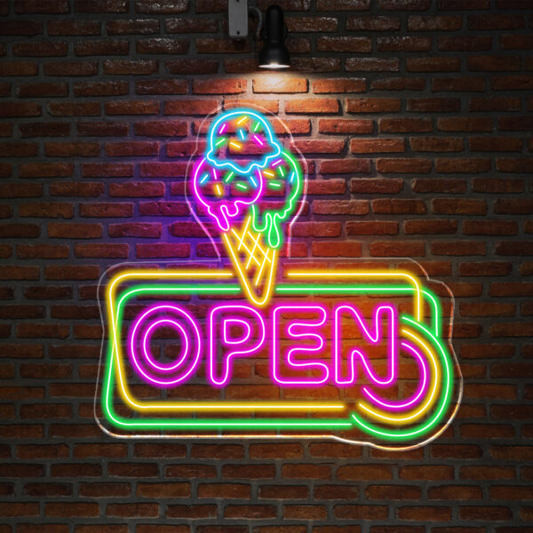 Open Ice Cream Neon Sign, Restaurant Neon Sign, Business Led Logo Light, Ice Cream Decor, Neon Sign for Coffee Shop, Party Neon Sign Decor